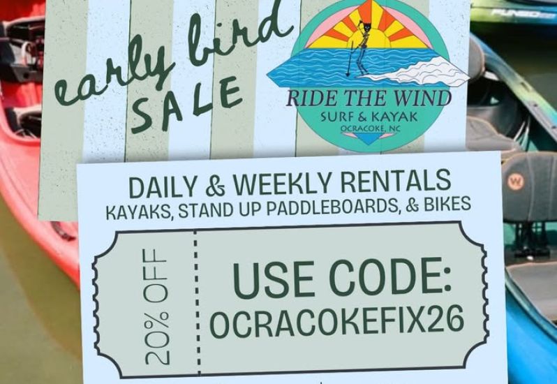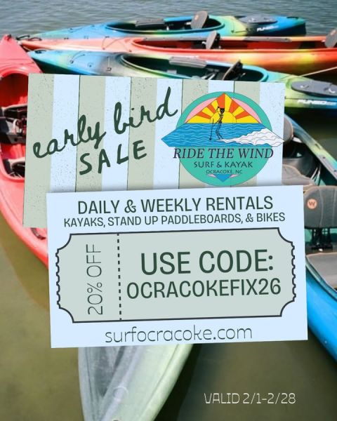 Go ahead and book your rentals for this year with code “ocracokefix26” @ surfocracoke.com for 20% off THIS MONTH ONLY!