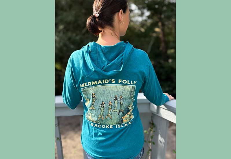 Our Rising Mermaids T-Shirt hoodies are back in stock! Available in teal and black. One of my favorite tops- style AND comfort 🥰