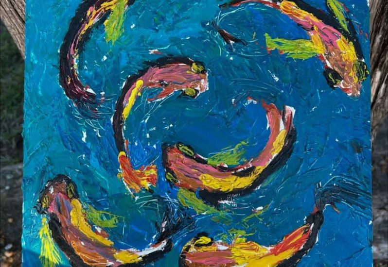 We put this artwork on a hat as part of our Ocracoke Artist Series this year. This series is designed to support local artists by sharing the profit. These hats are available in the shop and online!