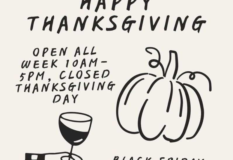 We’ll be open everyday at 10 am, except for Thanksgiving day. We’ll be closed on Thursday, November 27th to spend the day with family and friends.